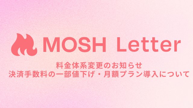 MOSHの料金体系変更のお知らせ(決済手数料の一部値下げ・月額プラン導入について)