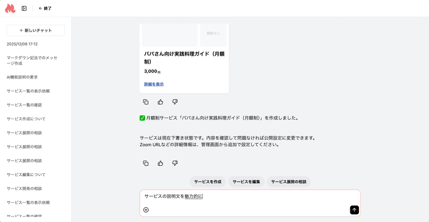 魅力的なサービスの説明文や価格など、より直感的にサービスの設定を進められるよう、フォーム形式の入力体験も提示します。