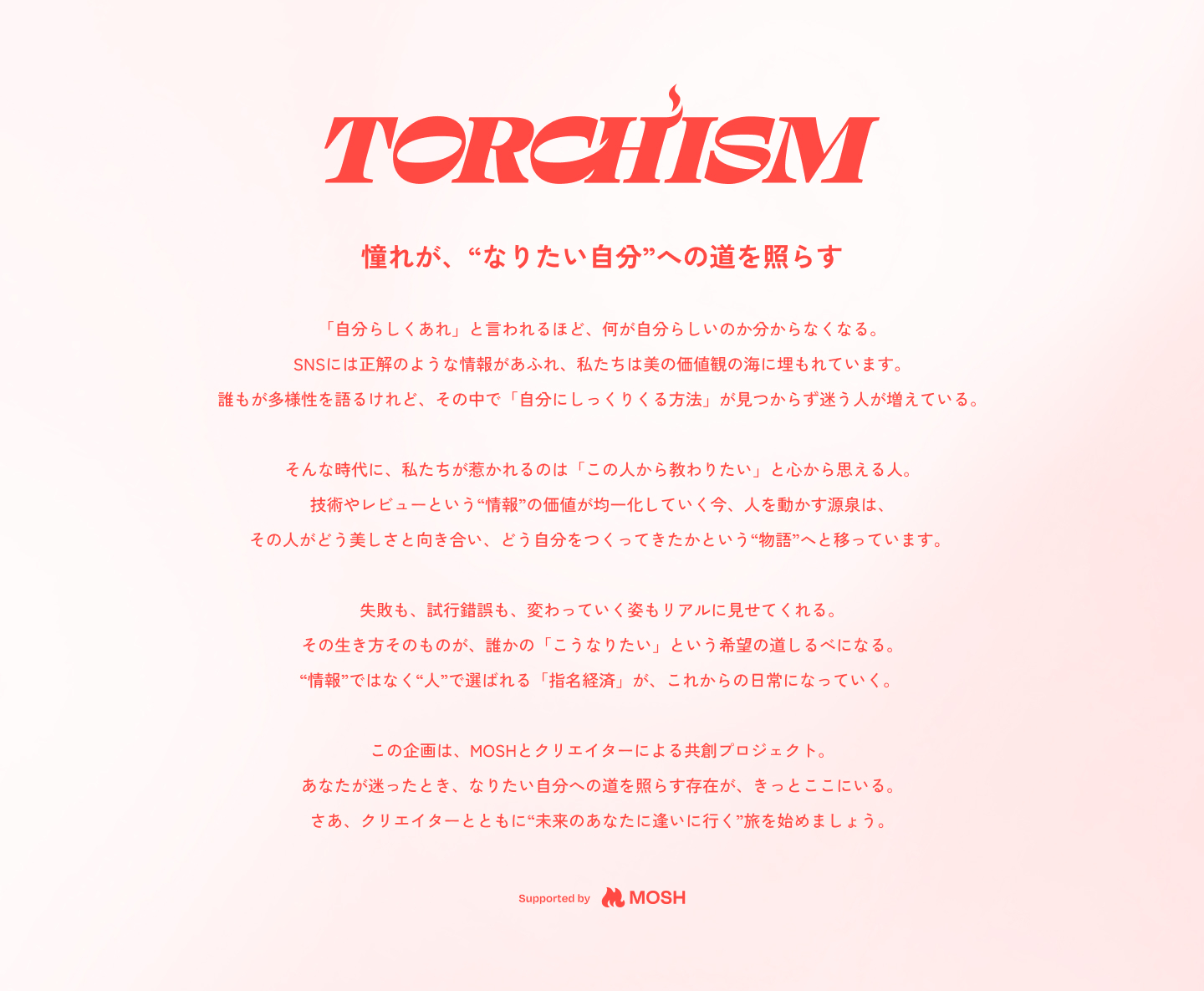 美容カテゴリーの参画クリエイター紹介や、TORCHISMのコンセプトを伝える特設ページを公開いたします。